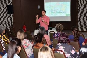 A Semana Pedagógica da Escola Cuiabana 2019 prossegue nesta segunda-feira (28) com atividades de formação no Hotel Fazenda Mato Grosso. Cerca de 250 professores de Artes e Educação Física, das Regionais Norte e Leste (pela manhã) e Sul e Oeste (à tarde) estão participando da palestra ‘Dança, Movimento e Cultura’, ministrada pelo prof. Dr. Vitor Hugo Morani, da Universidade Federal de Mato Grosso (UFMT), do campus de Barra do Garças.